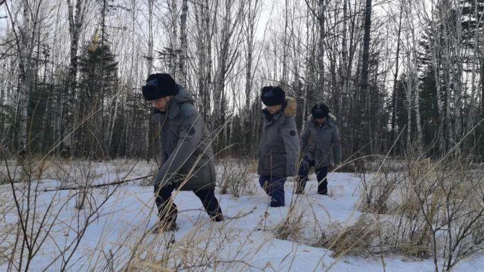 ▲ 三峽能源黑龍江分公司青年運(yùn)維團(tuán)隊(duì)成員踏雪做好線路巡視