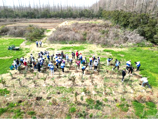 3月11日,三峽集團在滬3家單位團組織聯合組織60余名青年志愿者赴上海長興島重溫紅色記憶、共植一片青綠。