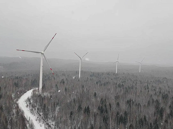 這片被風(fēng)雪包裹的林海之上,33臺(tái)巨大的風(fēng)力發(fā)電機(jī)緩緩轉(zhuǎn)動(dòng),化作點(diǎn)亮千家萬戶的溫暖。
